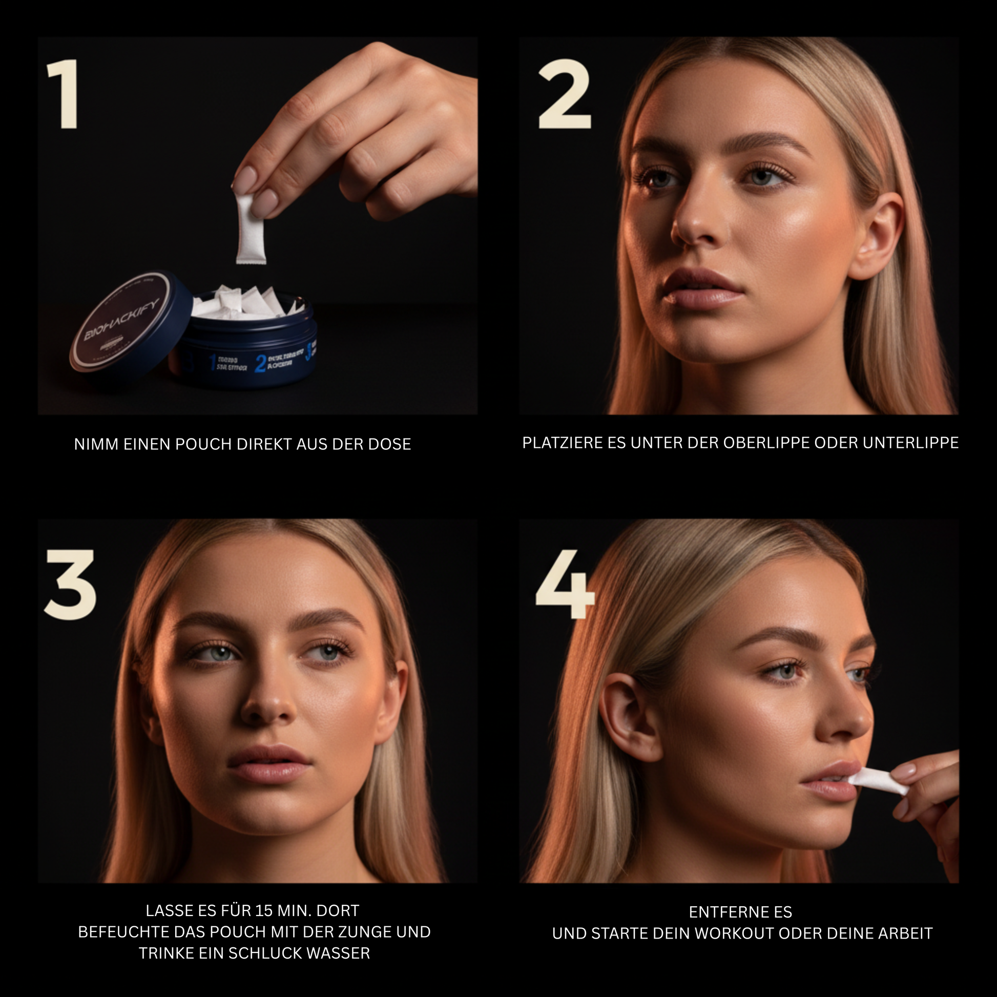 Biohackify Energy Pouches sind präzise dosiert, sauber formuliert und auf Performance ohne Nebenwirkungen ausgelegt –